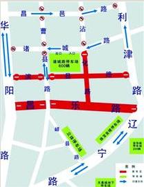 ????由東向西行駛進(jìn)入社會(huì)臨時(shí)停車場(chǎng)的車輛,經(jīng)臺(tái)東一路、遼寧路、利津路進(jìn)入諸城路(昌樂(lè)路文化街北側(cè),諸城路的曹縣路至沾化路口段之間)臨時(shí)停車。