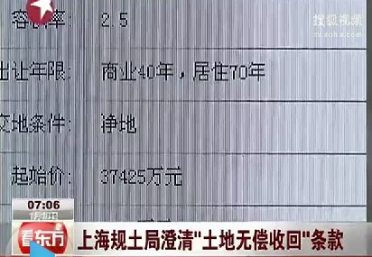 視頻截圖:上海規(guī)土局澄清“土地?zé)o償收回”條款