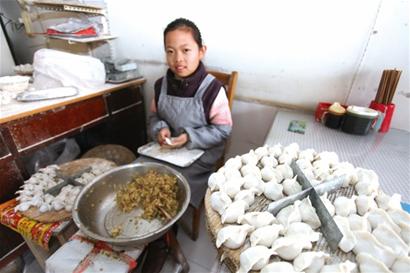 昨天下午,記者在水餃店里見到了正在包水餃的盛如瑾?!斑@兩天放假了,正好來包餃子,多準備一點好讓大家吃飽了?!笔⑷玷嬖V記者,她自己已經(jīng)包了500多個了,爭取在小年前親手包出1000個水餃來。她說,這兩天大家也都非常關注她,她所在的福州路小學全體師生給她捐了兩萬多元錢,昨天一名30多歲的叔叔看到早報的報道后,專門開車來他們店里扔下1000元錢就走了。這些好心人給他們家的幫助讓她覺得要好好地感謝大家。(記者 孫啟孟 攝影報道)