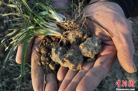 1月24日,山東鄒平縣好生鎮(zhèn)蒙二村村民在查看干旱的麥苗。據(jù)山東省防汛抗旱指揮部辦公室近日通報,全省旱情仍在持續(xù)加劇,總體已達(dá)60年一遇標(biāo)準(zhǔn),抗旱形勢日趨嚴(yán)峻。 董乃德 攝 圖片來源:CNSPHOTO
