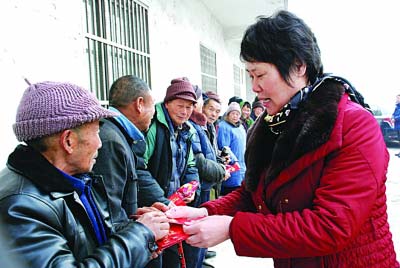受母親影響,已在南京供電公司工作的女兒魏小媛也極具愛(ài)心。金壇開(kāi)發(fā)區(qū)峨嵋村大學(xué)生孟益患白血病,花去醫(yī)療費(fèi)10多萬(wàn)元,春節(jié)前夕,謝茗得知情況后,決定前去走訪和慰問(wèn),消息傳到女兒魏小媛的耳朵里,她二話沒(méi)說(shuō),拿出近5個(gè)月的工資2萬(wàn)元錢(qián)塞到母親手里,委托她盡一份愛(ài)心。記者在采訪中了解到,魏小媛平時(shí)省吃?xún)€用,從不亂花錢(qián),但只要母親有善舉,她都會(huì)傾囊相助,尤其是對(duì)看著自己長(zhǎng)大的父老鄉(xiāng)親,她每次都會(huì)參加。魏小媛今年春節(jié)前就跟母親約定了慰問(wèn)對(duì)象和慰問(wèn)范圍:村里的重癥患者每人3000~5000元,貧困戶每人300~500元,敬老院老人每人100元壓歲錢(qián),這個(gè)規(guī)定將由魏小媛每年落實(shí)下去??谇话┗颊哧惡4ㄊ峙?000元現(xiàn)金不知如何說(shuō)好,只說(shuō)了一句非常憨厚的話:“丫頭,像她的母親”。據(jù)該村干部王小風(fēng)介紹,8年中,謝茗、魏小媛母女倆共向社會(huì)捐款600多萬(wàn)元,被村民尊稱(chēng)為“金壇女陳光標(biāo)”。(記者 湯漢華 趙鶴茂 張戰(zhàn)斗 文/攝)