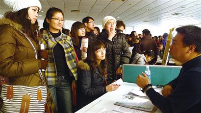 ????海爾路人才市場(chǎng)將一直開(kāi)放到正月十四,目前一共舉辦了3場(chǎng)招聘會(huì),一共455家企業(yè)提供了6676個(gè)崗位,3天的時(shí)間有2.23萬(wàn)名大學(xué)生進(jìn)入市場(chǎng)找工作。從目前的情況來(lái)看,大學(xué)生找工作的形勢(shì)仍不容樂(lè)觀(guān),人才市場(chǎng)招聘學(xué)生的簽約情況還沒(méi)有統(tǒng)計(jì)出來(lái),但是根據(jù)以往早報(bào)記者在大學(xué)招聘會(huì)現(xiàn)場(chǎng)的經(jīng)驗(yàn)來(lái)看,求職的簽約率在兩三成左右。在這種情況下,存在軟肋的大學(xué)生,命中率會(huì)更低。