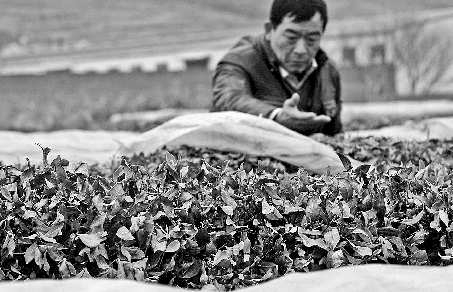 13日上午,記者來到青島嶗山區(qū)王哥莊街道桑園社區(qū),在半山腰間成片的茶田都已成了黃色?!巴赀@個時候,茶樹都是綠油油的,現在卻成了這個樣……”青島嶗浩茶廠的老姜在王哥莊種茶已經有20多個年頭了,他告訴記者,王哥莊的人家家戶戶都種茶葉,總共有大約1.2萬畝茶田,這其中8000畝是大田茶,4000畝為大棚茶,孰料青島的天氣格外寒冷,加上140多天沒有雨水,今年嶗山綠茶的產量將不足一半,現在大部分的大田茶已經干枯,只有少部分大棚茶有可能在4、5月份產出春茶。