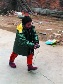 在與孟堂村相鄰的任莊村,記者見(jiàn)到了8歲的任芳芳,4年前她也被帶出去“耍雜技”,經(jīng)歷了3年的非人生活后回來(lái),人已經(jīng)變形。