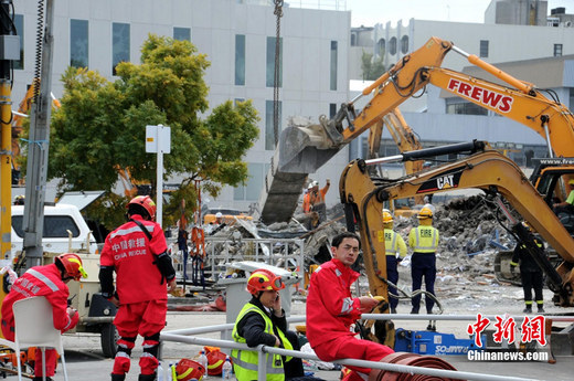????2011年2月26日,新西蘭克萊斯特徹奇,中國救援隊在CTV大樓展開救援工作。除廢墟清理工作外,中國救援隊還將利用生命探測設(shè)備搜尋幸存者。