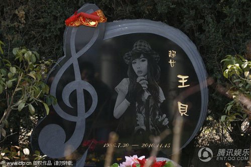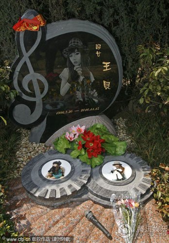 3月27日,石門(mén)峰“名人墓”里筆者見(jiàn)到超女王貝的墓碑,墓碑上刻巨大音符,碑前有粉絲留下的話筒和鮮花,保安稱這樣的墓價(jià)值不菲?,F(xiàn)場(chǎng),有圍觀的群眾說(shuō),“這么漂亮還整什么容?”