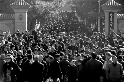 清明長(zhǎng)假第一天,八寶山人民公墓人頭攢動(dòng)。 本報(bào)記者張沫攝