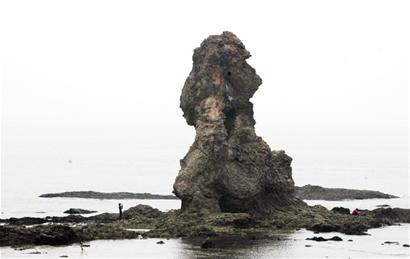 ????在青島嶗山午山腳下臨海斷崖南側(cè),距離岸邊百米處有一座17米高的石柱,形如老人坐在碧波之中,人稱“石老人”。老公公以手托腮,注目凝神,每天晨迎旭日,暮送晚霞,伴著潮起潮落,歷盡滄桑,不知度過了多少歲月。關(guān)于這塊奇石的傳說吸引了許多游人來此觀賞,然而度過了千年萬年,石老人在歲月中顯出了“老態(tài)”?!笆先孙L化嚴重,時不時往下掉石塊,真擔心長此以往,這處自然景觀將消失在海上?!弊蛉?,家住嶗山的市民秦先生表示了他的擔憂,他覺得這處獨一無二的景觀應該進行保護。