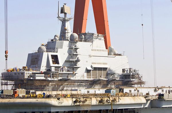 資料圖:瓦良格航母已被涂裝成標(biāo)準(zhǔn)的中國海軍淡灰色涂裝。