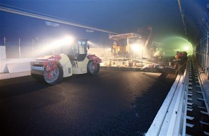 橫穿青黃海底的青島膠州灣海底隧道于去年4月底全線順利貫通,青黃兩地在海底 “握手”,“青黃不接”徹底成為歷史。目前,主線隧道瀝青已全部鋪設(shè)完畢,隧道的接線工程也已經(jīng)進(jìn)入大面積瀝青鋪設(shè)階段,其中,四川路隧道和高架路面將于本月中旬開始鋪設(shè),最快月底前結(jié)束。