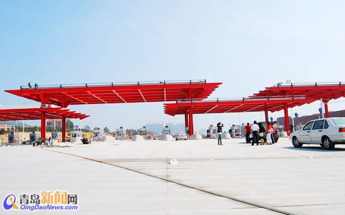 本月28日膠州灣隧道和海灣大橋同步通車 膠州灣隧道薛家島端出入口 薛家島端收費(fèi)口整體模樣