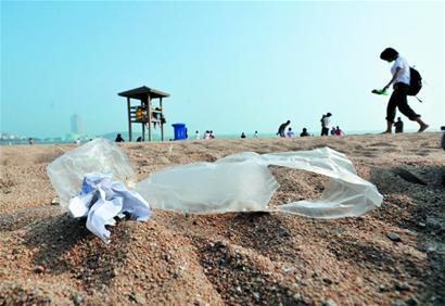 下午2時40分,6名圍在一起打撲克的游客準(zhǔn)備離開,他們身后隨意扔了幾個空礦泉水瓶,其中一名男青年將鋪在地上的報紙拿起來,將撲克包好放入背包,起身后用腳踢了踢地上的礦泉水瓶,確認(rèn)是個空瓶子,就和大家轉(zhuǎn)身離開。6名男青年剛離開,一名拖著編織袋的老太太走過來,將地上遺留的瓶子收進(jìn)編織袋。剩余的塑料袋在沙灘上隨風(fēng)四處亂飄。至下午3時記者離開,7撥離開沙灘的游客只有3撥把隨身垃圾帶走,另有14名路過的游客邊走邊把手中的雜物扔在沙灘上。