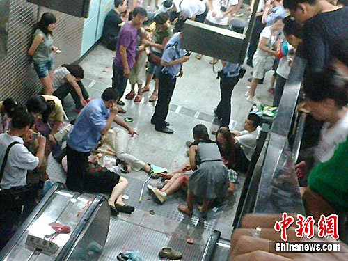 ????千龍網(wǎng)訊 2011年7月5日上午九點(diǎn)三十六分,地鐵四號(hào)線扶梯A口上行電扶梯發(fā)生設(shè)備故障,造成29名乘客受傷。京港地鐵公司立即啟動(dòng)相關(guān)應(yīng)急預(yù)案,受傷乘客均已送往醫(yī)院檢查搶救,目前有1人死亡,2人重傷,26人輕傷。