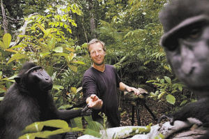 英國(guó)攝影師大衛(wèi)·斯萊特日前在印尼蘇拉威西島北部的一個(gè)國(guó)家公園內(nèi)旅行,在那里遇到了一群珍稀的黑冠獼猴。這些感到好奇的動(dòng)物圍著斯萊特留下的相機(jī)跳來(lái)跳去。