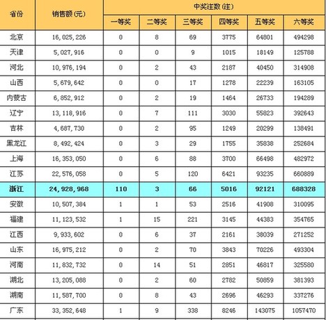 ????北京時間2011年07月26日晚,福利彩票雙色球第2011086期開獎,當(dāng)期開出的獎號為:紅球 06 07 09 12 17 24;藍(lán)球 09。一等獎井噴113注,每注獎金514萬,這也是雙色球歷史上的第一大井噴,超越了曾創(chuàng)造3.599億元的單期93注的紀(jì)錄!其中浙江省獨(dú)攬110注,若為一人所中,將至少獲得5.6億巨獎,創(chuàng)造中國彩市的新紀(jì)錄!