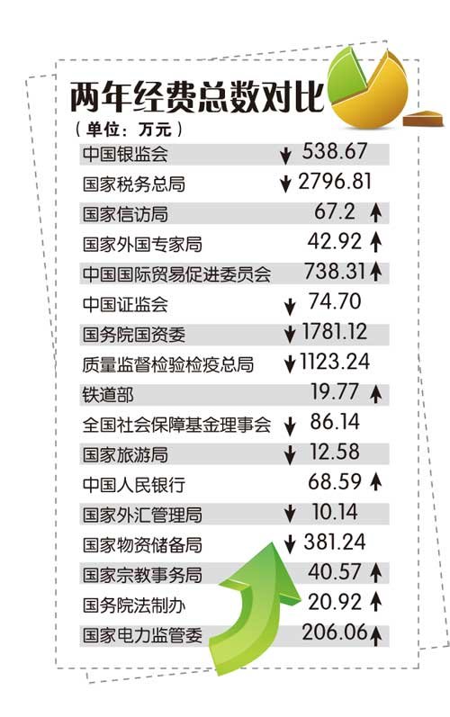 統(tǒng)計發(fā)現(xiàn),2010年“三公”實際花費比預算少的有32家:科技部、教育部、監(jiān)察部、國家知識產(chǎn)權局、交通運輸部、衛(wèi)生部、水利部、國家糧食局、中央黨校、國家工商行政管理總局、國家統(tǒng)計局、中國宋慶齡基金會、國土資源部、工信部、中國殘聯(lián)、國務院辦公廳、國務院研究室、國家體育總局、環(huán)保部、海關總署、國家國防科技工業(yè)局、國家航天局、國家原子能機構、國家信訪局、鐵道部、中國人民銀行、國家外匯管理局、國家宗教事務局、審計署、農(nóng)業(yè)部、國家人口和計生委、人力資源社會保障部。
