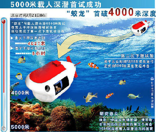 圖表:5000米載人深潛首試成功,“蛟龍”首破4000米深度 記者高微 編制