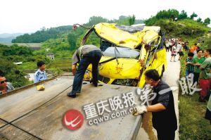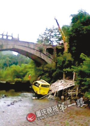 重慶客車撞破石橋墜10米掉水潭 13人死傷(圖)