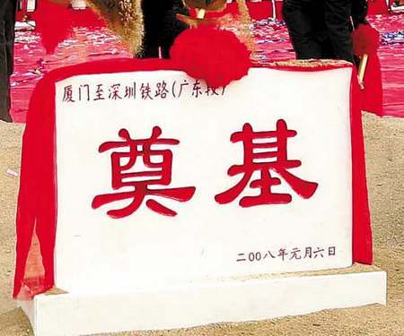 2008年廈深高鐵奠基,至今尚未完工。(陳昆侖 攝)