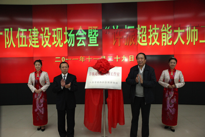 源和社會保障部揭牌的全國第一家“技能大師工作室”。