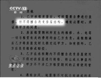 租賃合同有不得改房屋結(jié)構(gòu)條款。央視截圖