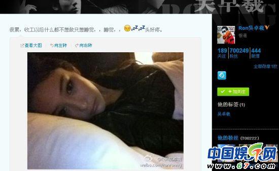 張馨予放在吳卓羲微博的“床照”