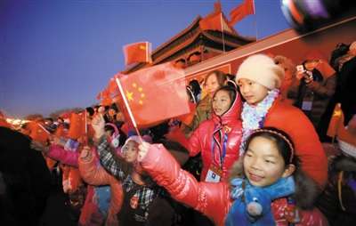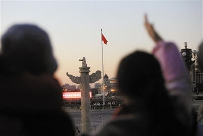 ????新年第一天,天安門廣場(chǎng)的升旗儀式有些特別。以前從未向普通民眾開放的天安門觀禮臺(tái),首次迎來5000名看升旗的游客。天安門管委會(huì)也成為北京首個(gè)設(shè)立“旅游開放日”的政府機(jī)構(gòu)。