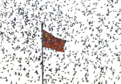 昨日,國旗冉冉升起后,1萬只和平鴿被放飛。新華社發(fā)(王申 攝)