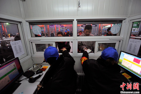 1月8日,為期40天的2012年春運(yùn)正式啟動(dòng)。官方預(yù)測(cè)今年春運(yùn)客流量將超過(guò)31億人次。圖為北京西站正式啟用實(shí)名制驗(yàn)票。中新網(wǎng)記者 金碩 攝