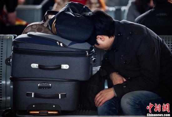 1月8日,旅客在南京火車站候車大廳內(nèi)等候上車時(shí)睡著了。當(dāng)日,一年一度的春運(yùn)拉開帷幕,至2月16日結(jié)束,持續(xù)40天。據(jù)預(yù)測(cè),2012年春運(yùn)期間客流量將達(dá)到31.58億人次,令人疲憊的春運(yùn)開始了。泱波攝