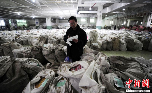 1月15日,重慶渝北區(qū)龍頭寺中國郵政快遞分揀處,春節(jié)臨近中國郵政快遞爆倉。春節(jié)臨近快遞業(yè)務量大幅度增加,倉庫里堆滿了等待分發(fā)的快遞物品。
