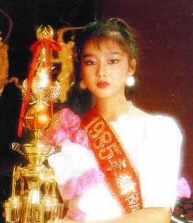 1985年,朱麗倩獲選“新潮小姐”季軍,雖濃妝仍不掩青春靚麗。