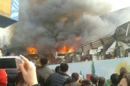 今天下午2時(shí)許,大連市48中學(xué)北側(cè)大連地鐵工棚大火。大火從靠近電車道的一端起火,火勢(shì)迅速蔓延,火苗一度達(dá)到10多米高,濃煙四起。等119趕到現(xiàn)場(chǎng),大火已經(jīng)向東蔓延,燒過了三分之二面積的工棚,期間至少發(fā)生了一次爆炸(原因不明),碎片四處散落。