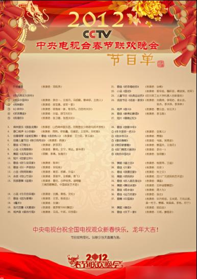 央視春晚正式節(jié)目單曝光 后半場幾乎全是歌舞