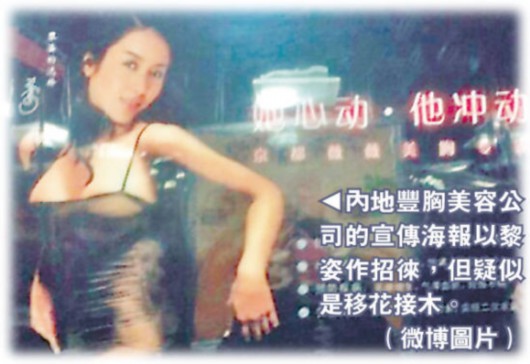 豐胸美容公司的宣傳海報(bào)以黎姿作招徠,但疑似是移花接木。