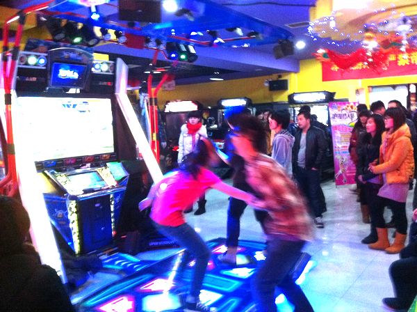 ????還沒進(jìn)入游戲廳,嗆鼻的煙味就讓人有窒息的感覺。門口一臺跳舞機前圍觀人的里外三層,里面幾個初中生模樣的孩子在玩。記者仔細(xì)觀察,這四個孩子兩男兩女,其中兩個男孩手里都有一根燃著的香煙,很享受地吸著。這時旁邊的一個面容清秀的小女孩從男孩手中接過香煙,熟練地吞云吐霧。隨著音樂的響起,兩個女孩瘋狂地扭動身體。