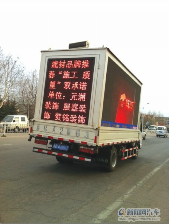 ![]() ????拉著LED廣告開車上路 ????近日有市民反映,在大街上經(jīng)常碰到一種滿載LED顯示屏的廣告車,與普通車不同,這種車行駛速度跟步行有一比,此外,隨著顯示屏畫面不斷跳動,頻頻挑戰(zhàn)其他駕駛員的眼球,而且還制造出巨大的噪音,嚴(yán)重影響行車安全?!耙膊恢肋@種車是不是合法的,怎么能載著這么大的顯示屏在大街上遛彎呢?這也太影響其他駕駛員了,路過的駕駛員都會多瞅幾眼這種車,弄不好就可能會引發(fā)交通事故。 ”市民馬女士提出質(zhì)疑。跟隨一小時兩眼被晃暈昨天記者在城陽區(qū)和即墨市分別見到一輛此類車載LED廣告車。在未打任何招呼的前提下記者跟隨其中一輛車兜了一圈。即墨市區(qū)的這輛廣告車沒有固定的行駛路線,就是不斷在小商品批發(fā)市場、大潤發(fā)、利群、寶龍廣場、利客來這幾個人流較大的購物中心之間來回走動。 ????記者驅(qū)車跟在廣告車的后面,發(fā)現(xiàn)廣告車的平均時速僅約15公里/時,跟步行的速度差不多。在跟隨該車的一個小時里,記者發(fā)現(xiàn)雙眼被顯示屏跳動的畫面晃得很累,在跟隨體驗結(jié)束后,記者感覺雙眼非常疲勞。當(dāng)行駛至車流較多的路段時,廣告車因為速度太慢不斷制造交通擁堵,該車占據(jù)一個車道,其他車輛只好繞行。記者發(fā)現(xiàn),在廣告車經(jīng)過的地方,不斷投來各種好奇的目光,雖然沒有引發(fā)交通事故,但駕駛員的注意力被很大程度地分散。 ????廣告車并不會因為車速太慢而在最外側(cè)車道上溜達,時不時地跑到超車道上玩龜行。在跟隨結(jié)束后,記者攔下廣告車,由于廣告發(fā)出的聲音太大,記者只好扯著嗓子和駕駛員交流。在駕駛室里根本就聽不到其他車輛的鳴笛聲。 ????晃眼加噪音應(yīng)禁止上路