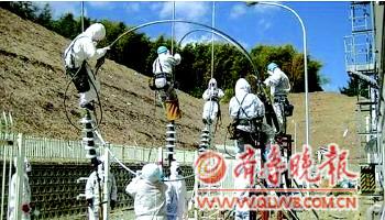 福島勇士在核電站內(nèi)修復輸電線路。(資料片)