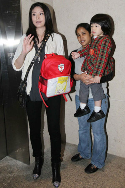 懷著已經(jīng)8個(gè)多月“小籠包”的陳慧琳,近日親自出馬接大兒子“蝦餃仔”放學(xué)回家,陳慧琳只畫著淡妝,身材臃腫的她不敢抱蝦餃仔,全程都由保姆代勞。大腹便便的陳慧琳則負(fù)責(zé)拿書包,路上見有記者,心情愛好的陳慧琳還向記者揮手打招呼,要進(jìn)入電梯時(shí),陳慧琳更是握著蝦餃仔的手向記者揮手告別。