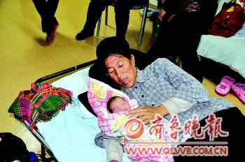 馬海莫了洛和剛出生的兒子在一起。(記者 李蕊攝) 19日19時(shí)30分,在青島發(fā)往南昌的K341次列車行駛到兗州段時(shí),一位四川籍的彝族孕婦在丈夫的協(xié)助下于列車衛(wèi)生間內(nèi)產(chǎn)下一名男嬰。在熱心乘客、工作人員及醫(yī)護(hù)人員的幫助下,孕婦和嬰兒得到及時(shí)救助。 20日上午,記者在濟(jì)寧醫(yī)學(xué)院附院見到了產(chǎn)婦馬海莫了洛和她的家人。馬海莫了洛的丈夫叫鄭爾呷,今年40歲,他告訴記者,他們老家在四川省普格縣東山鄉(xiāng)高鋒村,都是彝族人。 “她馬上就要生了,原本不想現(xiàn)在出發(fā),可我們一家老小身上只有100多元錢,只能先趕路。”鄭爾呷告訴記者,幾個(gè)月前他帶著妻子和大兒子到濰坊的一家油脂廠打工。由于收入不理想,前幾天在一個(gè)老鄉(xiāng)的介紹下,準(zhǔn)備去安徽亳州的一家藥廠繼續(xù)打工,計(jì)劃到那邊先從廠方支點(diǎn)錢生孩子用,沒想到妻子在趕赴亳州的路上生了。 鄭爾呷回憶,19日18點(diǎn)左右,一路上沒什么異樣的妻子突然喊肚子疼,整個(gè)人滿頭是汗?;艔埐灰训泥崰栠缺惚е拮幼哌M(jìn)了所在車廂的衛(wèi)生間。 “雖然不是第一次做父親,但以前從沒有過接生的經(jīng)驗(yàn)。”鄭爾呷用生硬的普通話面帶羞澀地告訴記者,他們進(jìn)入廁所后不久孩子就出生了。把孩子抱在手里的鄭爾呷,慌亂中摸出了身上的二代身份證將連接妻子與兒子的臍帶截?cái)?,并用妻子的頭巾簡(jiǎn)單地裹住孩子。在聞?dòng)嵹s來的列車員及乘客的幫助下,生產(chǎn)后的馬海莫了洛被扶出了衛(wèi)生間。 當(dāng)天20時(shí)45分,K341次列車到了濟(jì)寧站,濟(jì)寧火車站提前聯(lián)系好的120救護(hù)車已等候在出站口,產(chǎn)婦及孩子被第一時(shí)間送上了救護(hù)車。 “多虧了熱心的山東人幫助,不然我們還想堅(jiān)持到亳州再就醫(yī)呢。”鄭爾呷說,他在火車上遇到很多好心人,小伙子朱瑞剛和一位不知名的女士分別給了他300元和1100元現(xiàn)金。20日下午,鄭爾呷一家懷著滿腔感激,重新登上了開往亳州的列車。(記者 李蕊) |