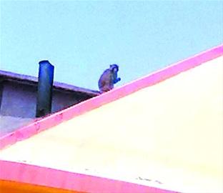 ????“快看!房頂上有只猴子!”昨天中午12時(shí)許,垛石村的王先生突然看到鄰居的房頂上蹲著一個(gè) “齊天大圣”,禁不住朝周圍的人喊叫起來(lái)。周圍的人起初還以為他在開(kāi)玩笑,但循聲抬頭一看,果真發(fā)現(xiàn)有一只猴子蹲在附近一座瓦房的房頂上。“以前看見(jiàn)過(guò)被耍猴人牽著的猴子,也見(jiàn)過(guò)被關(guān)在籠子里的猴子,像這種野猴子還是第一次看見(jiàn),挺稀罕的。 ”村民殷先生說(shuō)。