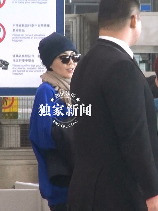 ,她戴著一頂“尼姑帽”,身穿藍色套衫搭配黑色半大衣,系著一條漂亮的圍巾,時尚清爽氣息撲面,王菲表情輕松地和助理易通辦理登記手續(xù),托運行李,而四名黑衣保鏢則分立兩旁,時刻警惕地盯著過往旅客,有旅客認出了王菲,但一看這陣勢也不敢上前“問候”。王菲全程與四名“特警”沒有任何交流,徑自輕松地走向安檢口,而保鏢們則繼續(xù)“忠心”護駕,一直看著王菲經過安檢口才離去。