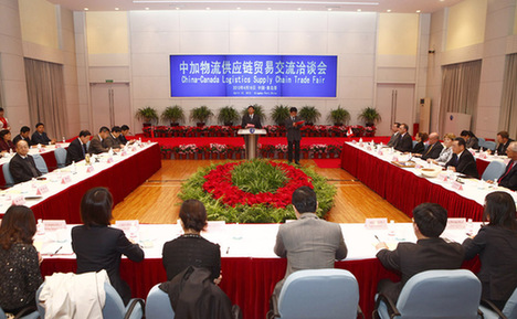 ??? 本報訊 4月16日14時,中加物流供應鏈貿(mào)易交流洽談會在青島港國際會議中心隆重舉行。在中加政府的高度重視和大力支持下,來自加拿大曼尼托巴省和青島市政府有關(guān)部門領(lǐng)導,中加雙方貿(mào)易商、供貨商、物流企業(yè)、金融企業(yè)代表共計60多人齊聚洽談,共話合作發(fā)展大事。