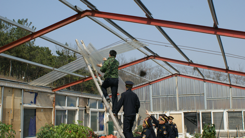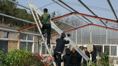 違章花棚被拆除 ????青島新聞網(wǎng)4月27日訊 原想在山林處建一座花棚種上名貴花木,伺機(jī)大撈一筆,但是終究難逃城管執(zhí)法人員法眼。26日上午,李滄城管執(zhí)法局虎山中隊(duì)執(zhí)法人員對(duì)在虎山山麓處一違章私自搭建的花棚進(jìn)行了拆除,因此花棚占地面積約200多平方,預(yù)計(jì)大約三天左右拆除完畢。 ????4月22日上午,李滄城管執(zhí)法局虎山路中隊(duì)接到群眾舉報(bào)電話,說(shuō)在虎山山上有人建起一座花棚,不知道有沒有手續(xù) ????經(jīng)初步勘查,此處約有200平方米左右,沒有任何單位給予的可建設(shè)通知,屬于違法建筑。 ????據(jù)了解,花棚主人為當(dāng)?shù)鼐用?,本?lái)想在這個(gè)隱蔽的地方建花棚養(yǎng)些名貴花木,等到過(guò)節(jié)的時(shí)候出售來(lái)?yè)Q取利潤(rùn),誰(shuí)知才建成沒幾天就讓執(zhí)法人員發(fā)現(xiàn)。 ????經(jīng)過(guò)協(xié)調(diào),花棚主人找來(lái)工人自行拆除。由于占地過(guò)大和里面有名貴花木,拆除工作將持續(xù)三日左右。(記者 王安) |