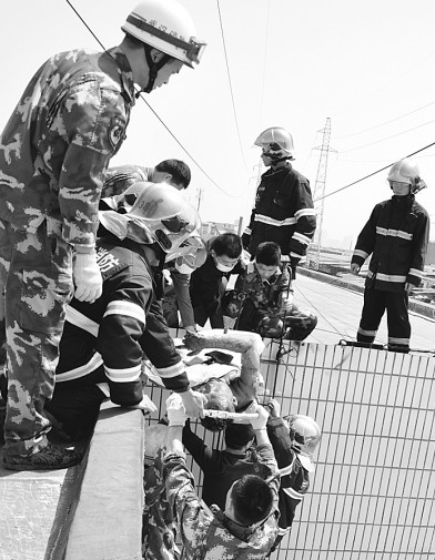 圖為消防隊(duì)員正在救援被高壓電擊傷的工人。(通訊員 田景超 張鵬 攝) 昨日上午,漢口一男子在房頂維修線路時(shí),不慎被距房頂約2米多高的高壓線擊中,頓時(shí)全身起火,嚴(yán)重?zé)齻?/p> 昨日上午10時(shí)13分,武漢市119指揮中心接到報(bào)警,稱一男子在江岸區(qū)中環(huán)物流被高壓電擊倒被困房頂,急需救援。接警后,指揮中心立即命令特勤消防一中隊(duì)3輛消防車及15名官兵前往營救。 10時(shí)18分 由于高壓線距離房頂比較近,供電公司工作人員將電斷后,消防官兵將救援器材及救援擔(dān)架拿到房頂,為防受傷男子被太陽曬,消防官兵將床單蓋在受傷男子身上,然后將其抬到一樓地面。 據(jù)其工友稱,事發(fā)后受傷男子身上衣服全部著火,工友找來滅火器朝他身上噴才將火撲滅,而他衣服幾乎被燒光。由于燒傷的劇烈陣痛,傷者一度想到自殺,在工友的勸說下才穩(wěn)定住了情緒。 隨后受傷男子被120救護(hù)車送往醫(yī)院救治。據(jù)了解,高壓線為11萬伏,目前男子被電擊原因還在調(diào)查中。(通訊員 田景超 張鵬) |