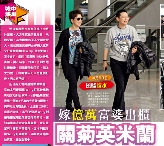 關(guān)菊英出柜9月嫁億萬富婆 米蘭掃嫁妝筑愛巢(組圖)