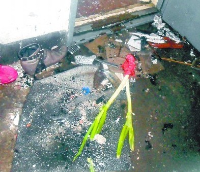 ????記者在現(xiàn)場看到,姜先生的老伴楊女士一直躲在樓下的一輛面包車?yán)锟奁S后有兩位自稱是姜先生妹妹的老人也先后趕到。等水流逐漸變小之后,記者順著樓道上去,看到樓梯上的積水可以淹沒鞋底,四樓著火的那家家門緊閉,門外一片狼藉,兩只紅色拖鞋、一只靴子、大蔥等還散落在地上。