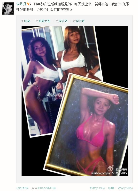 5月4日上午8點(diǎn),宋丹丹在其微博曬出11年前比基尼舊照,其中一張,她身著桃紅色比基尼,性感嫵媚,引網(wǎng)友“膜拜”。宋丹丹感嘆道,“11年前在拉斯維加斯照的,昨天找出來,覺得真逗。我如真有那樣好的身材,會(huì)成個(gè)什么樣的演員呢?”