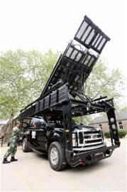 ????隊員們還現(xiàn)場演示了攀爬突擊車。“歹徒要是在樓上,這個裝備就用上了?!碧貞?zhàn)分隊指導員李超說,這輛攀爬突擊車是島城僅有的一輛,價值150萬元,打開車上的攀爬梯,隊員能迅速上到3層樓那么高,以迅雷不及掩耳之勢將歹徒拿下。