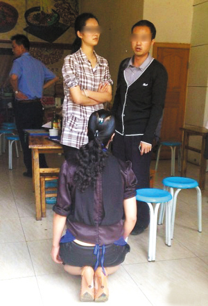 小吃店老板娘跪在兩人面前 網(wǎng)絡(luò)截圖 昨天中午,網(wǎng)友“空中飛虎”在金碧坊論壇中發(fā)帖稱,因吃出蒼蠅,一對公務(wù)員夫婦逼老板娘下跪道歉,并說:“我爹是公共安全專家局長,我姐姐在電視臺,我……在工商局,我家所有的親戚都是公務(wù)員,我家還養(yǎng)著多少小弟,你今天要是不賠,我打個電話,分分鐘把你家擺平……”在帖子配發(fā)的圖片中,一對男女頤指氣使,一位婦女背對鏡頭跪在他們面前。 昨天下午,楚雄彝族自治州公安機(jī)關(guān)官方微博發(fā)布關(guān)于此事的調(diào)查結(jié)果稱,圖片中的夫婦并非公務(wù)員。 事發(fā):“逼跪老板娘”?! 帖子稱,11日上午,兩女一男3名顧客在楚雄彝人古鎮(zhèn)一家叫做“姚安臭豆腐砂鍋”的小吃店吃早餐。一名男性顧客快吃完時,在碗里發(fā)現(xiàn)一只蒼蠅(并不確定蒼蠅是何時進(jìn)到碗里的)。小吃店老板娘趕忙道歉,并給這位男顧客換一碗,承諾3名顧客的早餐免費(fèi)。 同行的一名女顧客不同意,稱自己被氣得胸口疼,而且她老公有心臟病,被嚇得發(fā)病了,要老板娘安排她老公去體檢,并賠償3人精神損失費(fèi)、誤工費(fèi)。這名女顧客還電話通知了消協(xié)、工商、衛(wèi)生監(jiān)督、110和楚雄州電視臺“民情直通車”欄目。在消協(xié)、工商、衛(wèi)生監(jiān)督、110四方的調(diào)解下,老板娘先后三次向顧客道歉,并按照早點(diǎn)總價10倍的標(biāo)準(zhǔn)賠償了3名顧客100元錢。 兩名女顧客不同意,依然要求精神損失費(fèi)、誤工費(fèi),并安排體檢,同時言辭激烈地指責(zé)老板娘。最后老板娘被逼得下跪道歉。 調(diào)查:兩人并非公務(wù)人員 昨天下午,記者從楚雄市公安局獲悉,當(dāng)天樊某、沈某某夫婦二人在傅某與龔某某夫婦經(jīng)營的早點(diǎn)鋪內(nèi)吃早點(diǎn),期間樊某發(fā)現(xiàn)早點(diǎn)內(nèi)有蒼蠅,且身體感到不適。樊某夫婦因此提出賠償和賠禮道歉的要求,但由于雙方情緒激動,未能達(dá)成共識,樊某一方即向工商和衛(wèi)生監(jiān)督部門投訴。工商和衛(wèi)生監(jiān)督部門工作人員到達(dá)現(xiàn)場后進(jìn)行了調(diào)解,但雙方仍未達(dá)成協(xié)議,隨后樊某向楚雄市公安局110報警。 民警到達(dá)現(xiàn)場后,繼續(xù)進(jìn)行調(diào)解,但雙方仍情緒激動、言詞過激,民警竭力控制現(xiàn)場事態(tài),避免雙方發(fā)生過激行為。爭吵中,傅某向樊某夫婦道歉,并表示愿意賠償,但樊某夫婦不接受道歉。龔某某情緒激動地說:“你們到底要怎么樣?道歉也不行,賠償也不行,那我給你們跪著嘛!”隨即跪在了樊某夫婦面前。之后,工商部門工作人員通知雙方到工商局處理,樊某夫婦自行離開。 經(jīng)調(diào)查,樊某和沈某某系楚雄市人,兩人均不是公職人員,事件過程中當(dāng)事雙方未發(fā)生肢體沖突。 12日上午,楚雄市公安局開發(fā)區(qū)派出所召集雙方當(dāng)事人在派出所對糾紛進(jìn)行了再次調(diào)解。經(jīng)民警耐心勸解,龔某某表示將加強(qiáng)衛(wèi)生管理;樊某也向龔某某一方表示道歉,最終雙方達(dá)成諒解。 昨晚,記者試圖聯(lián)系發(fā)帖網(wǎng)友“空中飛虎”,核實(shí)樊某夫婦二人是否說出“全家都是公務(wù)員”的話,但是截至記者發(fā)稿時,對方仍沒有回復(fù)。 (記者 侯玉才) |